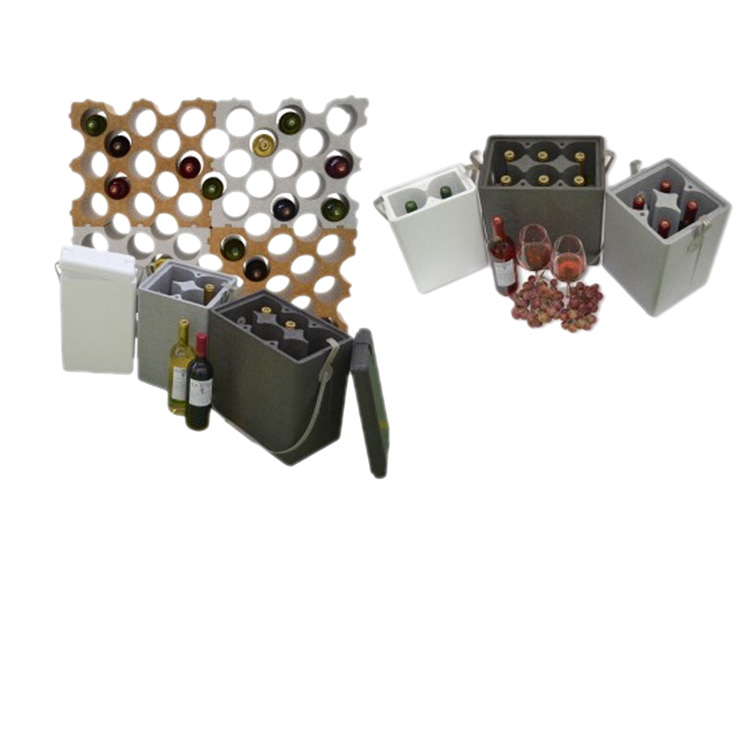 Botellero fabricado en poliestireno expandido o porexpan. Con una Capacidade para 2 botellas, ofrece un aislamiento termico muy eficaz que permite la conservacion del vino con todas sus propiedades.